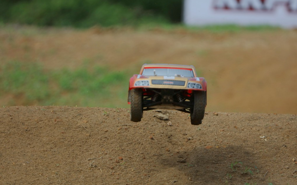 小輪徑的遙控車在崎嶇不平的泥土賽道上高速行駛,輪胎和地面抓地力處于半接觸狀態(tài),對車手操控著實是個難度不小的挑戰(zhàn),一不小心,遙控車就可能翻覆在賽道上。