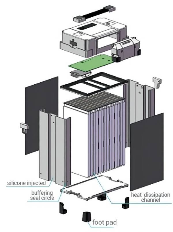 在電芯與電芯之間,電芯與箱體之間都配備減震裝置,用以減少或消除任何地方發(fā)生的沖擊。每個(gè)防震系統(tǒng)都相互隔離,防止相互連接,并允許將部分沖擊控制在一個(gè)狹窄的范圍內(nèi),增強(qiáng)了電池組的抗沖擊和抗振動(dòng)能力,提高電池在使用過程中的安全系數(shù)。