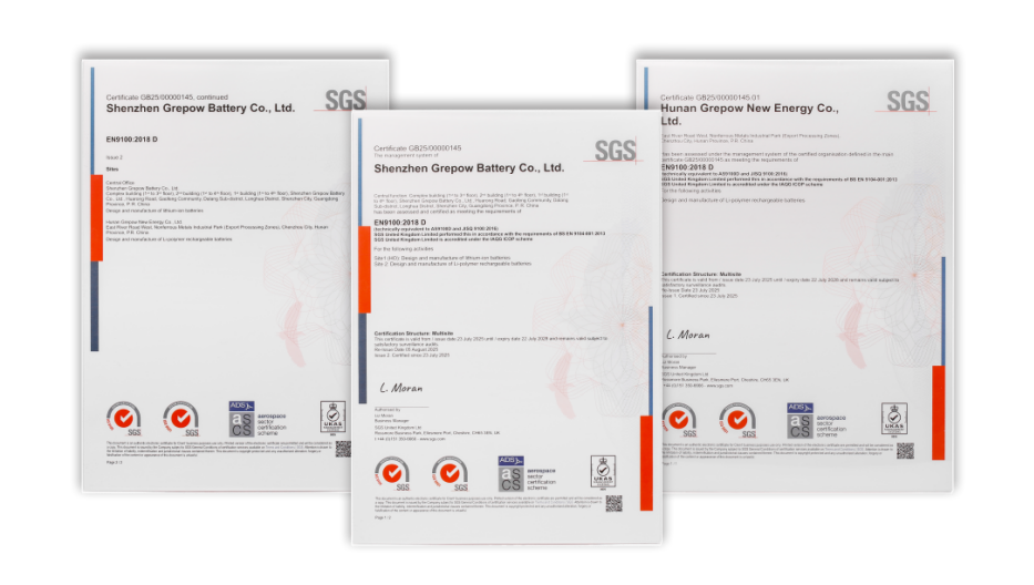 格瑞普電池榮獲 AS9100D 航空航天質(zhì)量管理體系認(rèn)證 質(zhì)量實(shí)力獲國際認(rèn)可,無人機(jī)電池板塊邁向高端市場(chǎng)