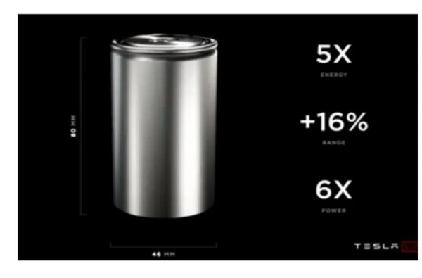 2020年9月22日特斯拉電池日活動(dòng)中,特斯拉CEO馬斯克揭曉了全新動(dòng)力電池,發(fā)布了全新的無(wú)極耳4680電池。據(jù)馬斯克介紹,全新4680電池在改善成本的同時(shí),能量密度方面提高5倍,續(xù)航里程提高16%,動(dòng)力方面提高6倍。
